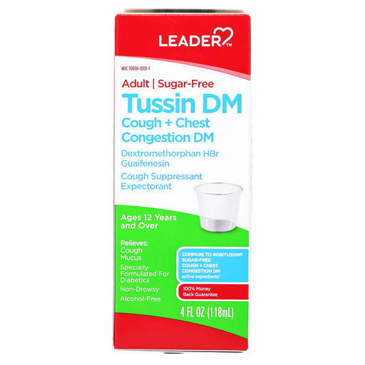 View full detailsLeader Tussin DM Cough & Chest Congestion Relief, Sugar-Free & Dye-Free Liquid, 4 oz