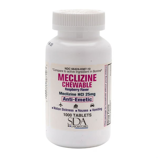 View full detailsMeclizine HCl 25 mg Chewable Tablets 1000 count