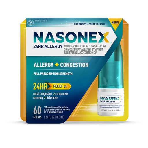 View full detailsNasonex 24-Hour Allergy & Congestion Relief Nasal Spray, 50mcg Mometasone Furoate, 60 Sprays