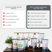 Designed to balance hormones and enhance female fertility. Packed with carefully selected botanicals, this loose leaf herbal tea offers a natural and effective way to support reproductive health. Each ingredient has been thoughtfully chosen for its unique properties and traditional use in promoting hormonal balance and reproductive wellness.