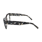 The frame is sold with demo lenses that have a logo stamped on them in ink. The frame can be fitted with real lenses at most optical stores. This frame provides comfortable fit and flatters a variety of face shapes. These eyeglasses are crafted from high quality, durable premium acetate plastic. The frame has spring hinges. Spring hinge temples prevent you from stretching the fit of your glasses and ensure that they remain intact and not become loose or out of shape. Original case is included. The glasses are made in China.