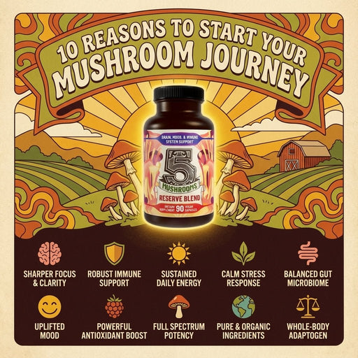 Premium Immunity, Gut Health, and Brain Cognition Formula - 5 Mushrooms Reserve Blend