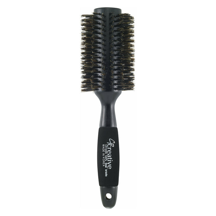 Introducing our Wood Reinforced Boar Bristle Hair Brush, featuring a vibrant black design and a no-slip foam handle for added comfort. The reinforced boar bristles and solid wood barrel make it perfect for penetrating and adding shine to thick hair. Its one-piece design ensures durability against heat.