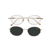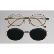 A set of optional sunglass clip-on lenses is included. Clip-ons are a convenient and affordable way for eyeglass users to shield their eyes from the sun's damaging rays and blinding glare. Clip-on sunglass lenses offer great flexibility for those who do not want to invest in two separate pairs of glasses. They clip on and off easily, usually with one hand.