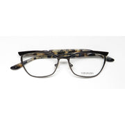 The frame is sold with demo lenses that have a logo stamped on them in ink. The frame can be fitted with real lenses at most optical stores. This frame provides comfortable fit and flatters a variety of face shapes. These eyeglasses are made of metal and high quality, durable acetate plastic. The frame has spring hinges. Spring hinge temples prevent you from stretching the fit of your glasses and ensure that they remain intact and not become loose or out of shape. Original case is included. The glasses are made in China.