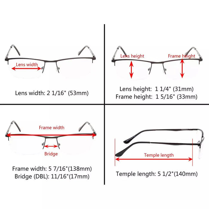 3 Pack Half-rim Metal Frame Reading Glasses R1614