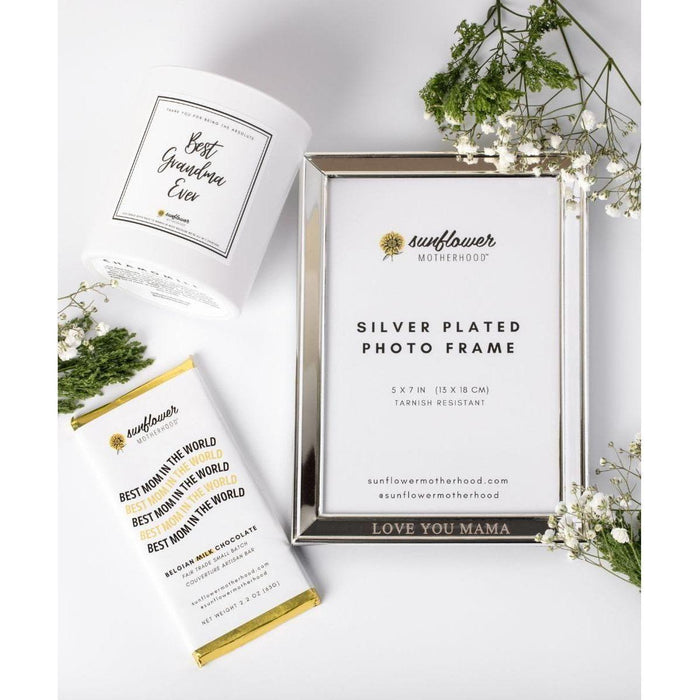 These delicious Belgian Couverture Artisan chocolate bars are designed to melt in her mouth AND melt her heart. Made with the finest ingredients, our tasty treats also come with a sweet and uplifting message that will make any mommy feel special. A perfect add-on to any of our other mom gifts, whether she's in the postpartum stage, has grown kiddos, or is enjoying grandmotherhood. Each bar is made with fair trade cacao in small batches locally in San Diego, California where we operate.
