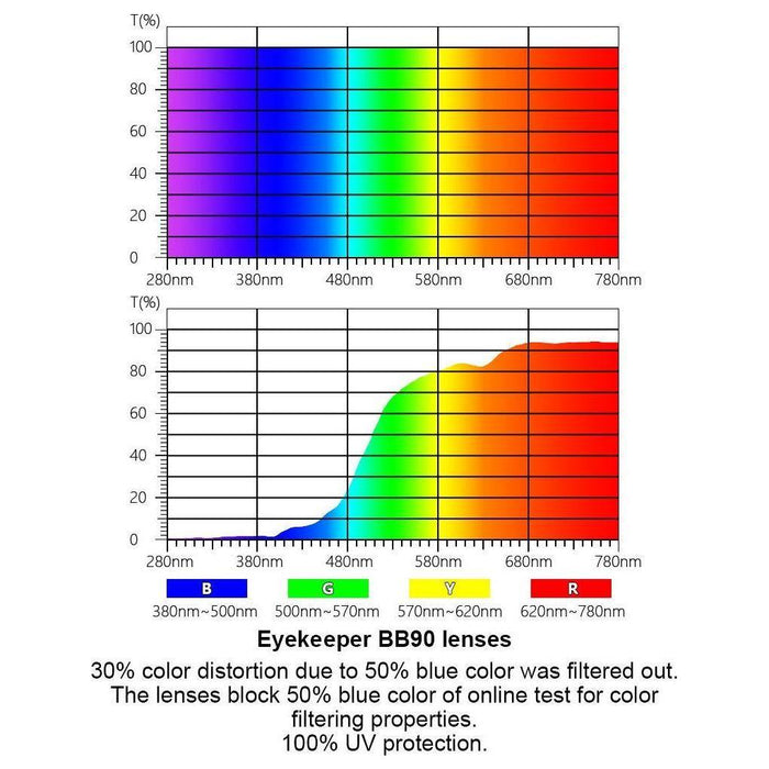 • Block 90% blue light, 30% color distortion
