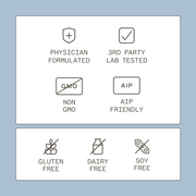 DOES NOT CONTAIN: Gluten, wheat, dairy, soy, or GMOs.
