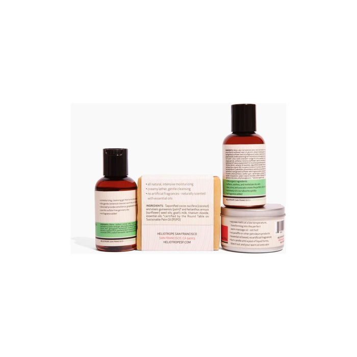 The perfect “shower gift.” This kit introduces you to some of our best-selling products. We’ve combined travel sizes of our best-selling body products: our hand & body lotion and sulfate-free shower gel (both fragrance free), plus our goat's milk soap, and a mini massage candle (w/pour spout) that melts to become warm massage oil! Take it on the road or use at home daily to feel fresh, hydrated and oh so clean.