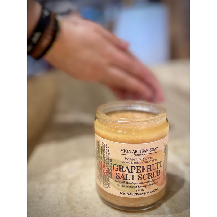 Ingredients: Himalayan salt, coconut oil, avocado oil, rosehip oil, pumpkin seed oil, liquid soap, grapefruit & orange essential oils.