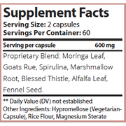 Organic Ingredients: Moringa Leaf, Goats Rue, Spirulina, Marshmallow Root, Blessed Thistle, Alfalfa Leaf and Fennel Seed