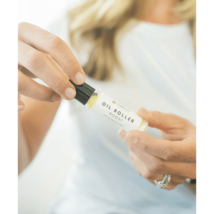 • Bundle and save! The Oil Roller Duo comes with our two signature blends, Boost and Calm. Whether you're looking for some energy or a moment of peace, this set has you covered. The roller applicator ball is made of green aventurine crystal, a stone known for its healing properties. Take a deep breath and apply to back of neck, forearms, and reflex areas on hands and feet.  Made with 100% Pure Essential Oils.