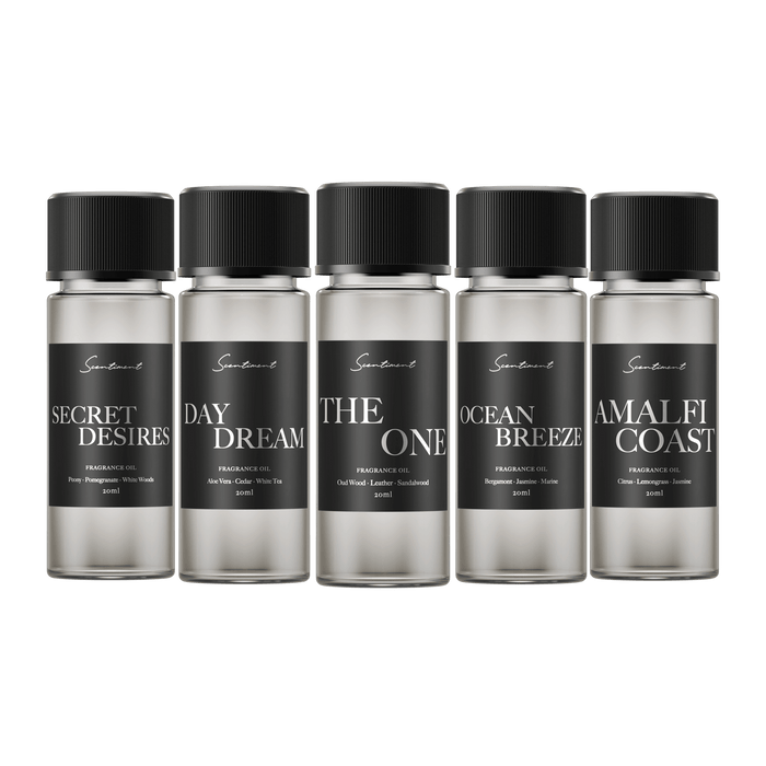 Based on your selection, this discovery set includes the following 20 ml bottles of our most popular hotel-inspired fragrance oils: