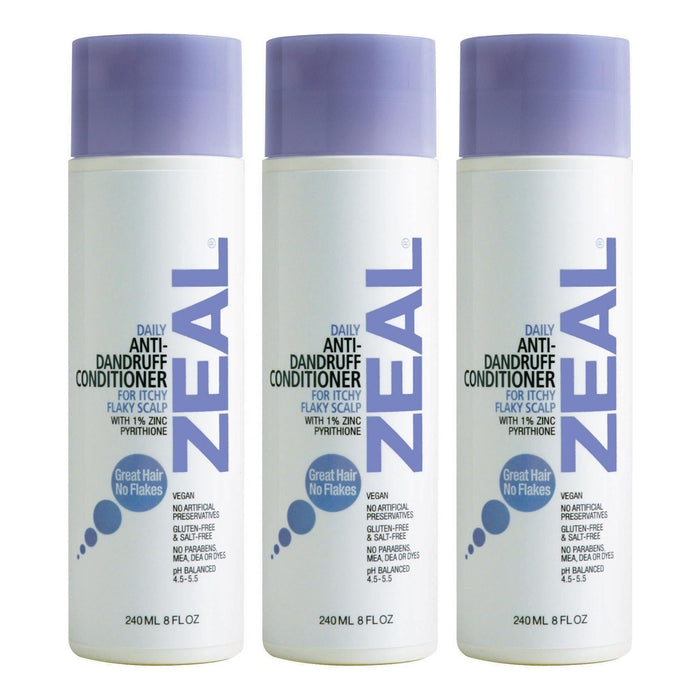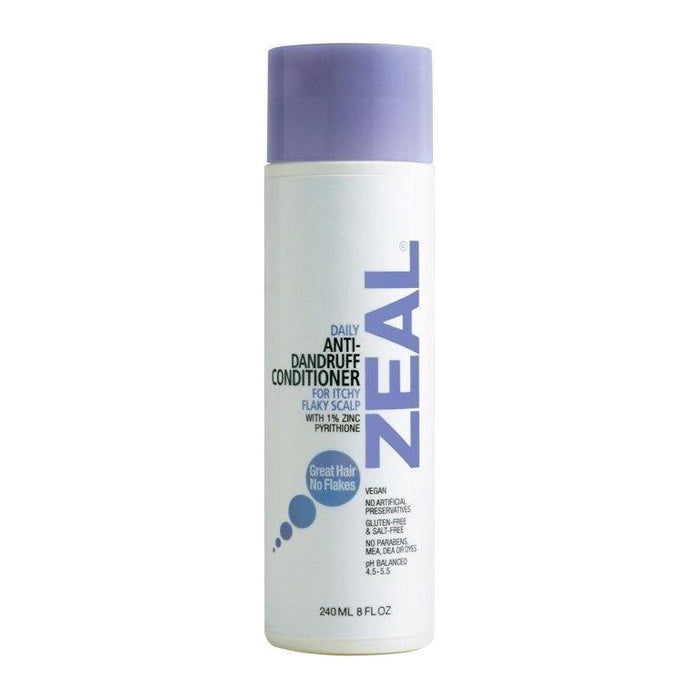 ZEAL Daily Conditioner does it all, combining clinically proven anti-dandruff itch & flake fighting ingredients with natural moisturizing factors, lipids and amino acids to eliminate tangles, control fly away, and make brushing and combing easier. With a pH of 4.5-5.5 and made without guar, propylene glycol or silicones, ZEAL Daily Conditioner is a cream conditioner that delivers smooth, soft hair without any build-up. Tangles just rinse away to leaves hair softer, stronger, better conditioned, all without preserves the life of hair color or bonding treatments. Will never build up and is safe to use as your everyday deep conditioner de-tangler.