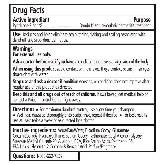 Ingredients: 0.5% Pyrthione Zinc and Allantoin added to our conditioner base of D. Water, Cetyl Alcohol, Stearyl Alcohol, Glyceryl Stearate, Behentrimonium Chloride, Stearalkonium Chloride, Methyl-Gluceth-20, Panthenol B5, Sodium PCA, Sodium Lactate, Rice Amino Acids, Vitamin E, Caprylic/Capric Triglycerides, Glycereth-2 Cocoate & Benzoic Acid (Preservatives), Fragrance.