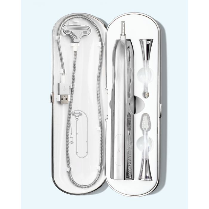 With its sleek and innovative design, the zina45™ is truly the Tesla of toothbrushes. This is the ONLY toothbrush in the world with our exclusive polishing head that delivers a shine so bright, you'll need shades just to smile. Features our patented 45° brush head and 4 unique cleaning modes to help you effectively clean above and below the gum line, preserving your oral (and overall!) health. Comes complete with a deluxe chrome travel case for easy, on-the-go access.